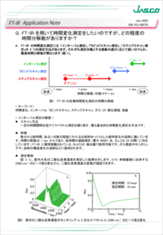 FTIRの時間変化測定には「インターバル測定」、「ラピッドスキャン測定」、「ステップスキャン測定」の3つの測定手法があります。それぞれの最高時間分解能は1sec、50msec、5µsec(オプションで10nsec)となります。