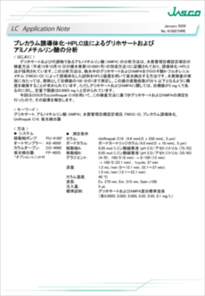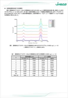 グリホサートおよび代謝物であるアミノメチルリン酸(AMPA) の分析方法は、水質管理目標設定項目の検査方法(平成15年10月10 日付健水発第1010001号)の別添方法12に記載されており、誘導体化-HPLC法が採用されています。この分析方法は、検水中のグリホサートおよび AMPA をクロロギ酸9-フルオレニルメチル(FMOC-Cl) によって誘導体化した試料をHPLC装置を用いて蛍光検出する方法です。水質検査の実施に当たっては、原則として目標値の 100 分の1 まで測定し、この値の変動係数が 20 % 以下となるように精度を確保することが求められています。ただしグリホサートおよび AMPA に関しては、目標値が 2 mg/L であるのに対し、定量下限値は 0.0005 mg/L と定められています。