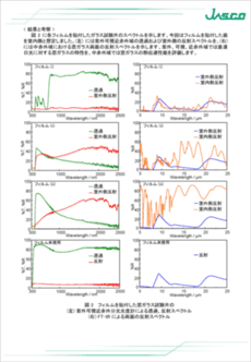 ここでは、紫外可視近赤外分光光度計およびフーリエ変換赤外分光光度計(FT-IR)を用いて、遮熱フィルムを貼付したガラス試験片の透過および反射スペクトルを測定し、現行の規格(2025年6月現在)に対応した日射透過率・反射率測定プログラムによってその日射熱取得率、遮蔽係数および熱貫流率を計算し、性能を評価した例を紹介します*。